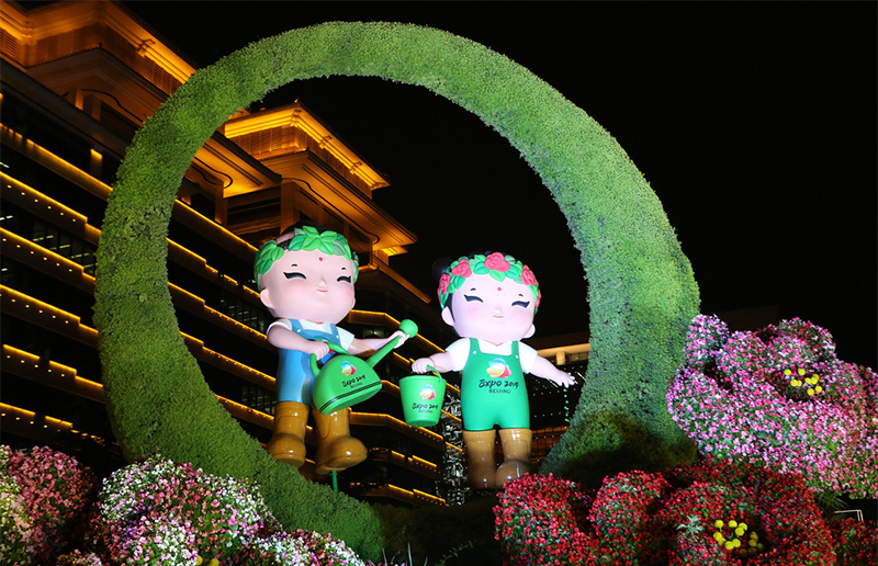 北京天安门广场及长安街沿线花坛夜景绚丽夺目