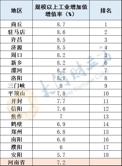 那么,河南省其他省辖市的GDP数据如何?记者从统计部门获得的一份各地GDP数据显示,从增速来看,河南省18个省辖市中,有15个市的GDP增速跑赢了全国。其中,商丘市以8.7%的GDP增速领跑全省,许昌和驻马店紧随其后。