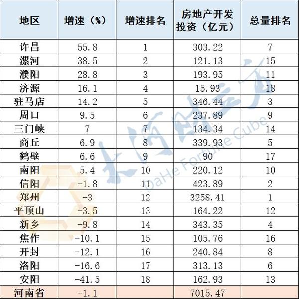 许昌市房地产开发投资303.22亿元,增速达55.8%,居河南省第一。漯河市和濮阳市房地产开发投资增速分别以38.5%和28.8%居河南省二、三名。(大河报·大河财立方记者 黄鑫)