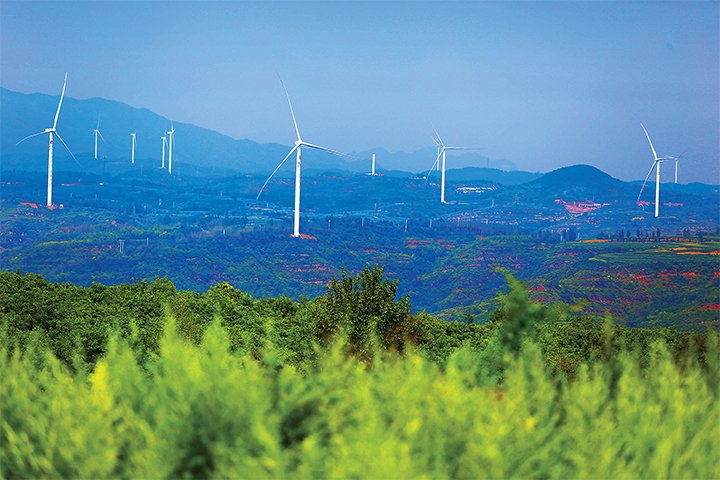 近年,济源利用山区风力资源,大力发展风力发电项目,有效提高节能减排效率和山区土地利用率,对济源生态文明建设和经济结构优化升级起到促进作用。同时,建设在山区的风力发电机形成了一道美丽的风景线,丰富了我市山区旅游资源。(记者 李浩 摄)