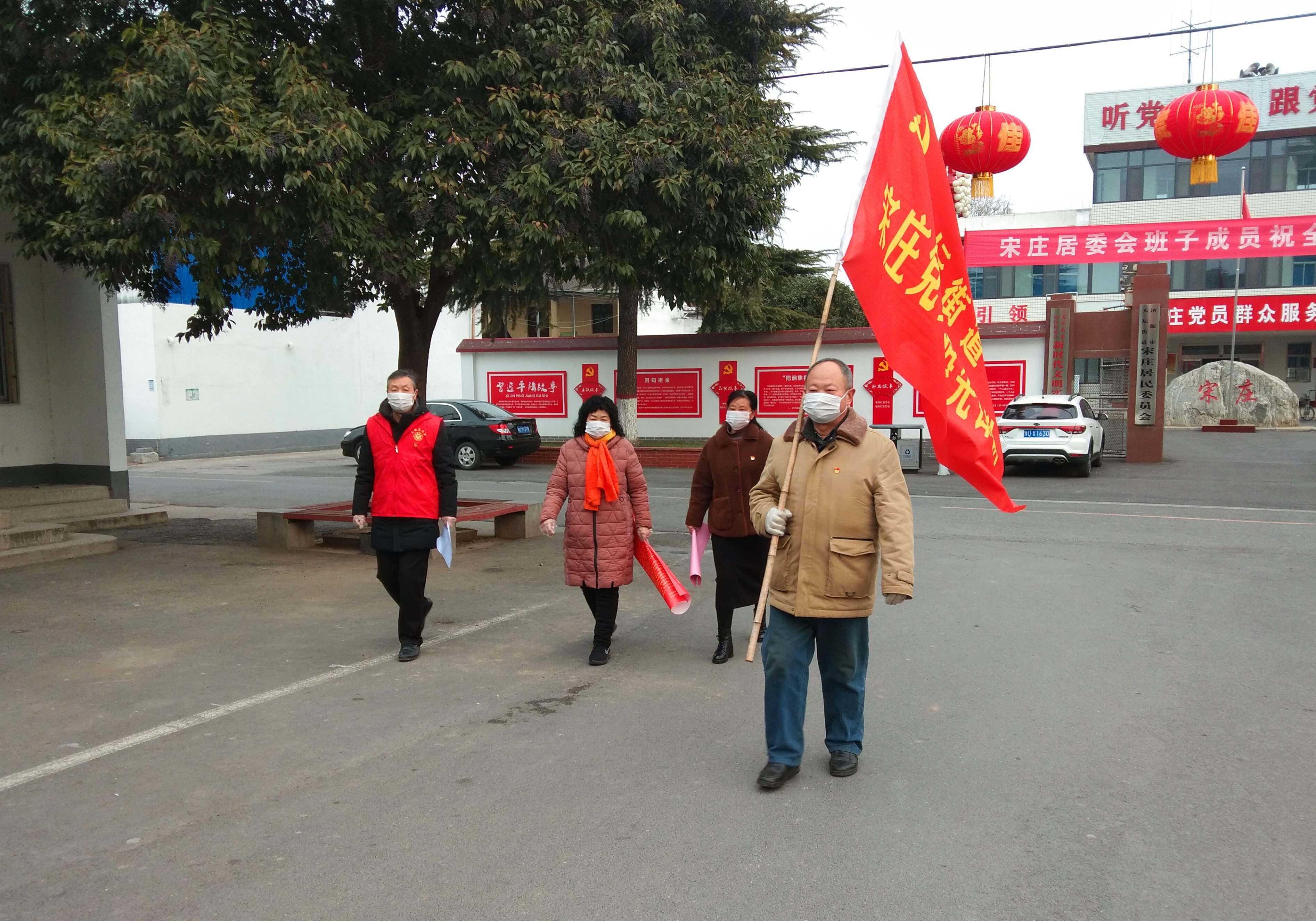 在五龙口镇化村,6名党员组成防疫宣传队,向群众宣传防疫知识。郭先军 摄