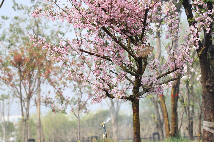 粉色的海棠花争相开放,绽放出迷人花姿,春风拂过,带来一地清香;高大的黄金竹笔直挺立,风姿独特;雪白的杜梨花,花团簇拥,争艳得让人看不到一片树叶……3月23日,在济源植物园内,记者已然嗅到春天的味道。