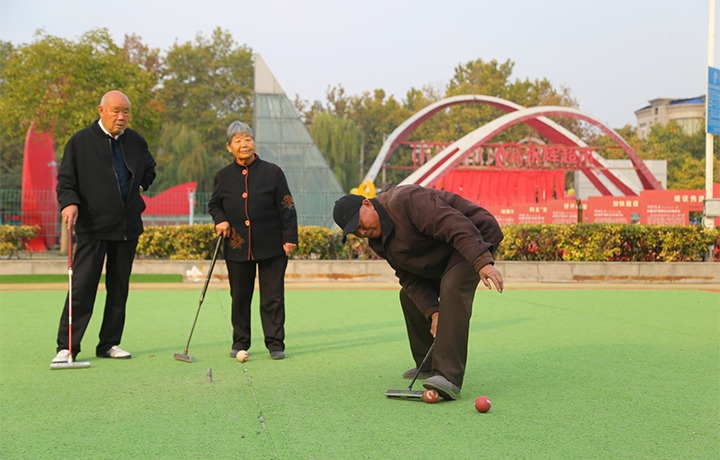11月4日,在宣化街与文昌路交叉口的门球训练场,市民在打门球。