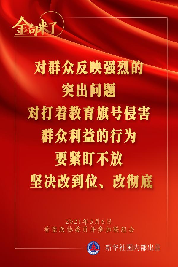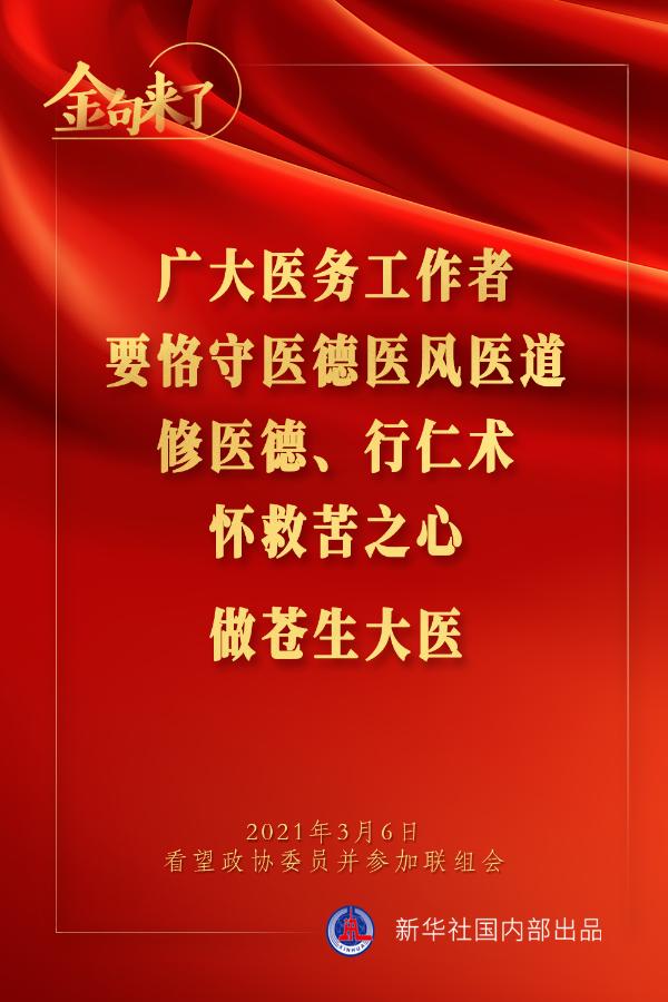 集中力量开展关键核心技术攻关,加快解决一批药品、医疗器械、医用设备、疫苗等领域“卡脖子”问题;依法严厉打击医闹和暴力伤医行为;有高质量的教师,才会有高质量的教育……3月6日下午,习近平总书记在看望参加全国政协十三届四次会议的医药卫生界、教育界委员并参加联组会时,讲了这些重要观点。一起来学金句。
