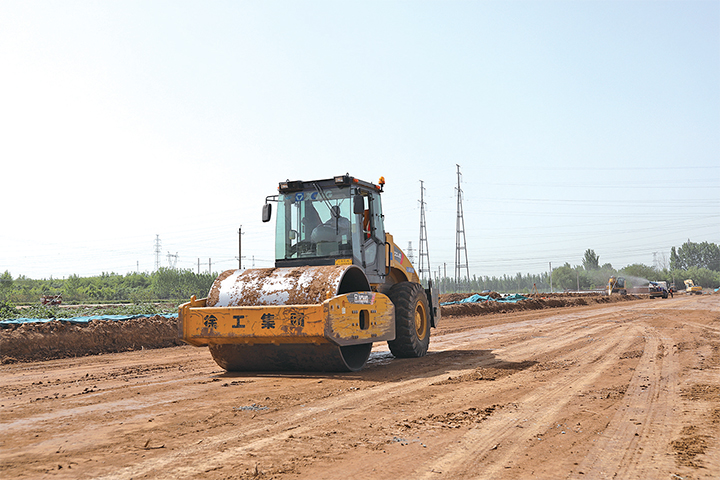 在施工现场,记者看到,几名工人正在进行雨水管道水泥浇筑作业,压路机、挖掘机等数台大型施工机械来回穿梭,现场一片繁忙的施工场景。视线从未离开过施工现场的交投集团总经理助理李新平和工程监理方几名同志,在旁边不时探讨着项目建设下步工作。