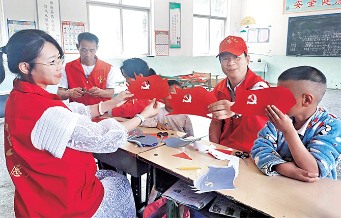 “今年是中国共产党成立100周年。我们利用每月一次的送课下乡活动,为孩子们策划了一系列红色教育主题美育课程,希望在陪伴他们‘迎六一·庆七一’的同时,在孩子们心中厚植爱党爱国爱社会主义情怀。”济源四中“送特色课下乡”志愿服务队教师告诉记者,除“剪纸颂党恩”活动外,志愿教师们还将“听党话 跟党走”第二届青少年“美育云端课堂”送到山区,利用多媒体与孩子们一起线上欣赏众多艺术家在线演奏的交响乐,体验美妙旋律,不断用多元化的形式满足孩子们的精神文化需求,帮助他们全面发展、健康成长。