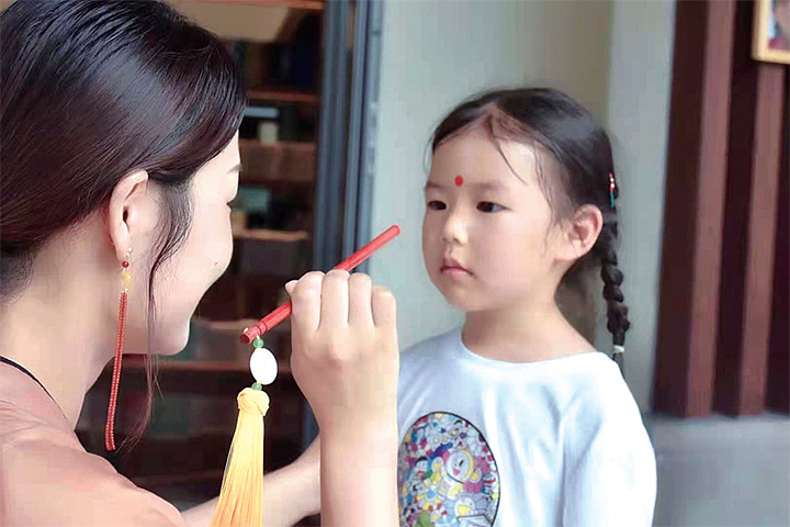 6月14日,一位家长用朱砂在为孩子点红送祝福。 段二平 摄