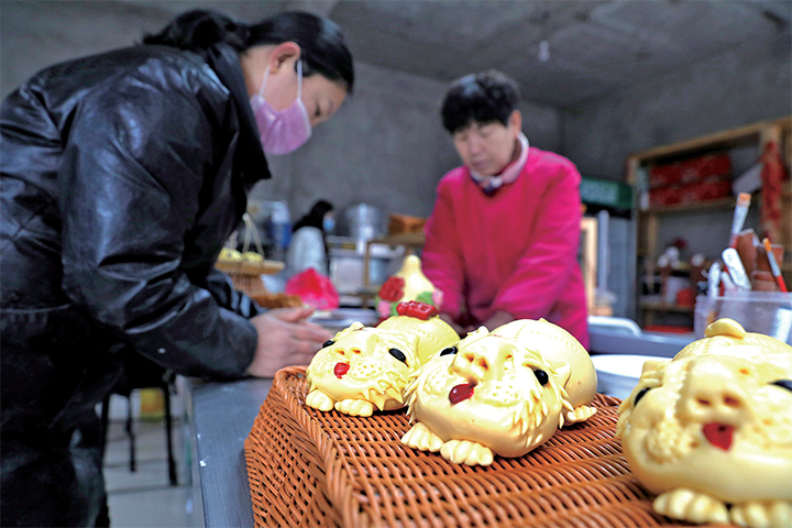 虎年春节临近,虎元素的中式面点吸引不少顾客前来预订。栩栩如生的“金虎”,寓意新的一年虎虎生威、如虎添翼,表达了人们对虎年的期盼。记者 李楠 见习记者 崔雨薇 摄
