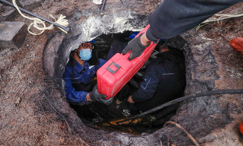 1月23日02时34分,10千伏山水世界城开闭所出现故障,该开闭所担负着山水世界城、尚品明珠、半山春景小区供电。随后,电缆运检中心电缆运检人员对设备进行巡视,03点30分,巡视人员发现10千伏I山水线(黄河路与愚公路交叉口西南角)中间接头故障。随后,组织施工人员对故障点进行抢修,及时恢复送电。卫凯 摄