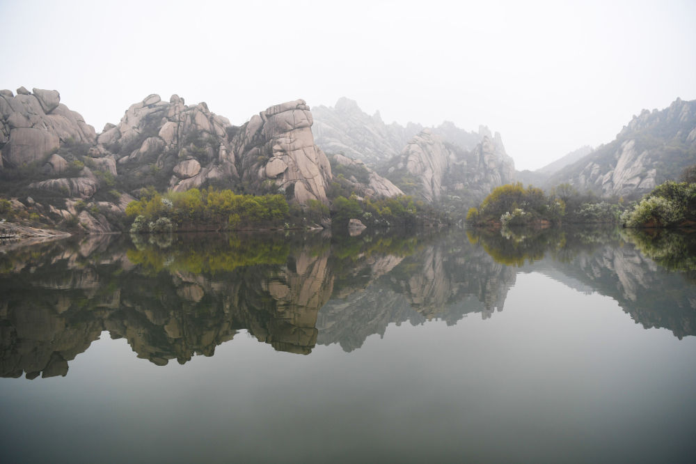走进连嶂叠翠的嵖岈山,千巅万壑,满目碧透,奇石交错。四个湖泊分布其中,湖中碧水粼粼,蜜蜡山挺拔巍峨。远观,嵖岈山像一座人造的巨型假石,又像一个精心构思的盆景。