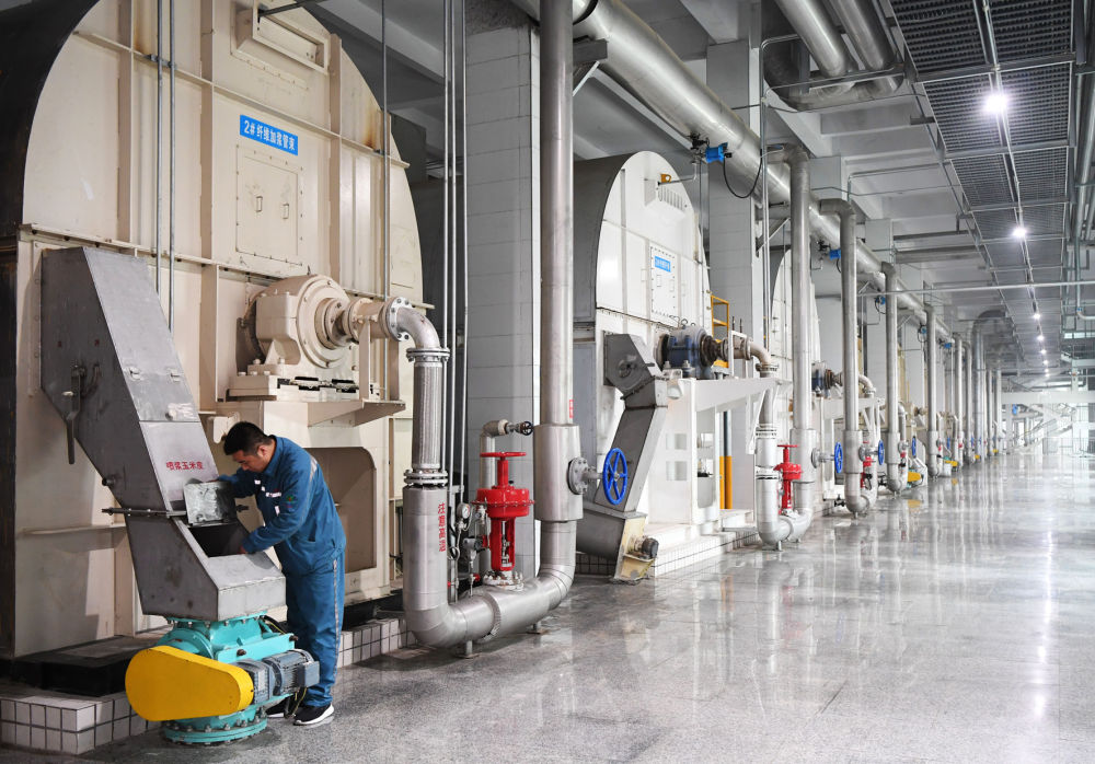 3月22日,在河南金玉锋生物科技有限公司的生产车间,工作人员在检查玉米加工设备运行情况。