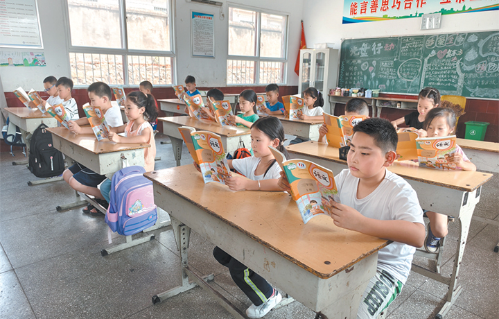 9月1日,五龙口镇实验小学三年级的同学正在教室看书学习。