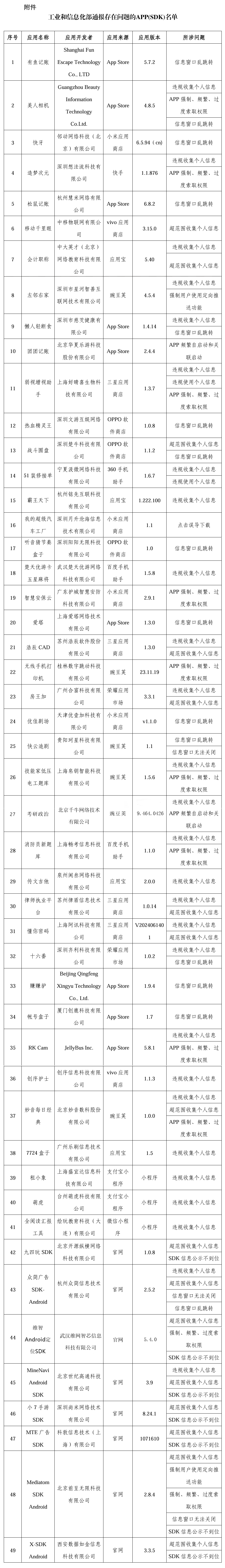 据悉,上述APP及SDK应按有关规定进行整改,整改落实不到位的,工业和信息化部将依法依规组织开展相关处置工作。
