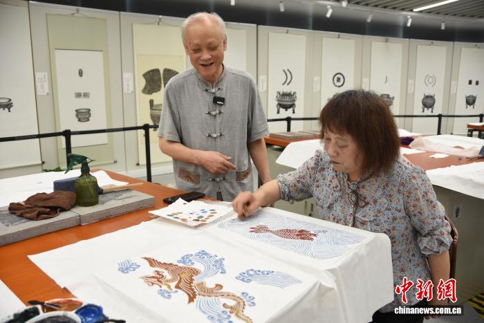8月27日,在河南郑州仁清金石传拓艺术博物馆,工作人员正在制作具有吉祥蕴意的高浮雕彩拓文创产品。 王宇 摄