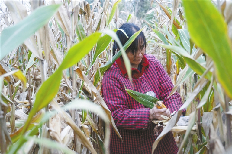 趁着降水间隙,农民下地抢收玉米