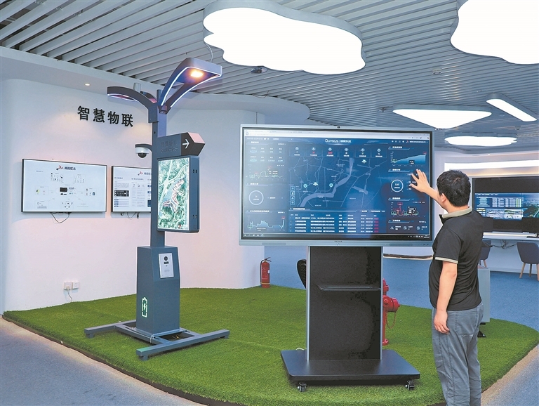 南阳市白河大数据产业园,技术人员在智慧物联网平台演示系统功能。近年来,该市通过引进和培育大数据企业,积极推动当地经济转型与智慧城市建设。 高嵩 摄