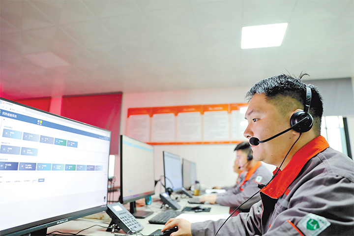 10月20日,河南省济源市城市供热调度中心的工作人员在接听供暖热线。