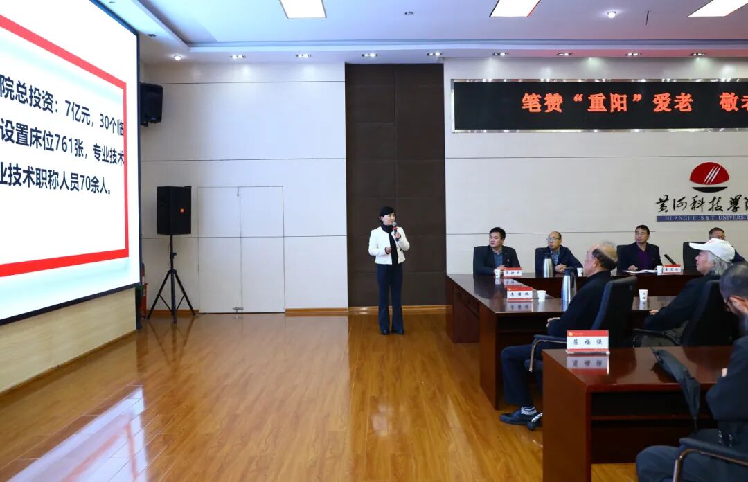座谈会在黄河科技学院信息大楼举行。党委书记于春霞首先对退休干部们的到来致以热烈欢迎,并强调:“尊老、敬老、爱老、助老是中华民族的传统美德,医院始终将此项责任扛在肩上,切实落实到具体行动中。”于书记详细介绍了学校及附属医院的发展历程、当前工作成效及未来发展规划,表示医院会围绕老年健康精准发力,创新服务模式,提升医疗水平,为老年群体健康福祉全力以赴。