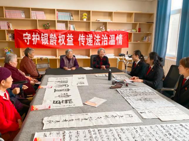 在养老服务中心的书法活动室,干警们结合老年人生活实际,用通俗易懂的语言讲解了养老诈骗防范、遗产继承等高频法律问题,通过案例剖析帮助老人理解法律知识。干警们告知老人“遇到法律困难随时联系法庭”,法院将用专业服务守护老人合法权益,让法治温暖浸润老年生活。