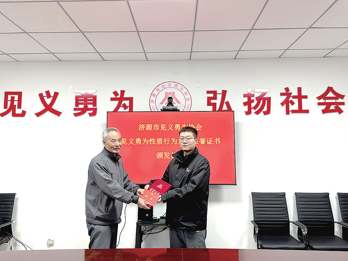 10月24日,坡头镇机关干部刘猛荣获“济源市见义勇为好人好事”称号。喜讯传来,其英勇事迹引发了热烈反响。