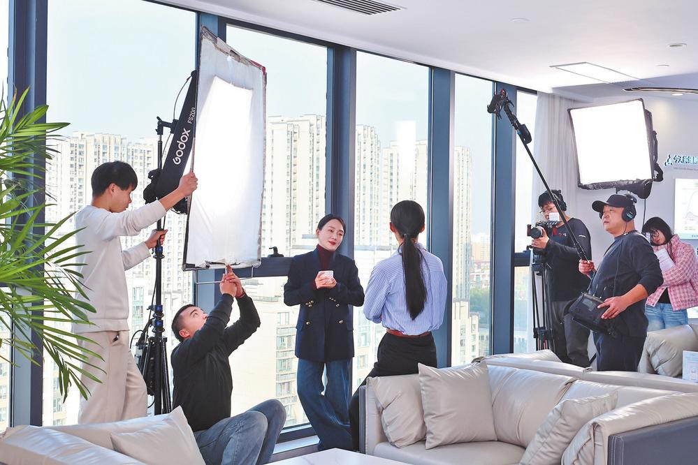 11月23日,短剧《阳台上的维特斯》在智汇城紧张拍摄。