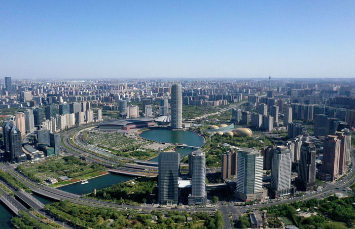 这是4月14日拍摄的郑州市郑东新区中央商务区(无人机照片)。新华社记者 李嘉南 摄
