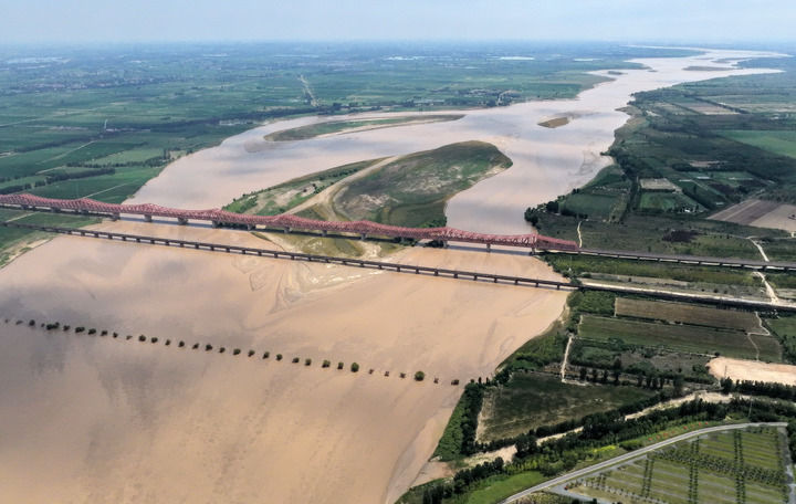 这是7月17日拍摄的黄河郑州段(无人机照片)。新华社记者 李嘉南 摄