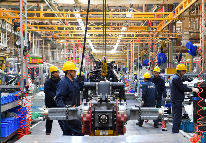 中国一拖集团有限公司员工在厂区内忙碌(2024年12月27日摄)。新华社记者 郝源摄