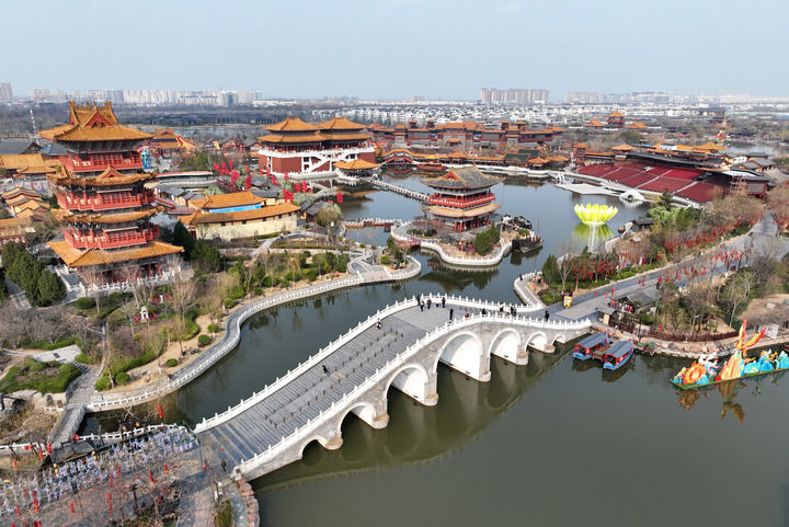 3月6日,游客在开封清明上河园景区游玩。新华社记者 李嘉南 摄