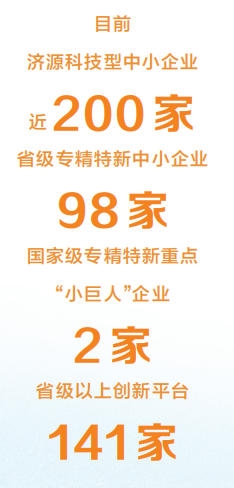 数据显示,目前,济源科技型中小企业近200家,省级专精特新中小企业98家,国家级专精特新重点“小巨人”企业2家,均创历史新高。省级以上创新平台141家。2023年,济源研究与试验发展经费投入强度达3.61%,居全省第一。2024年,济源综合科技创新水平指数居全省第五。