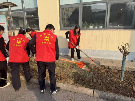 中原银行济源分行机关第一党支部开展“除杂草、净环境”志愿服务活动