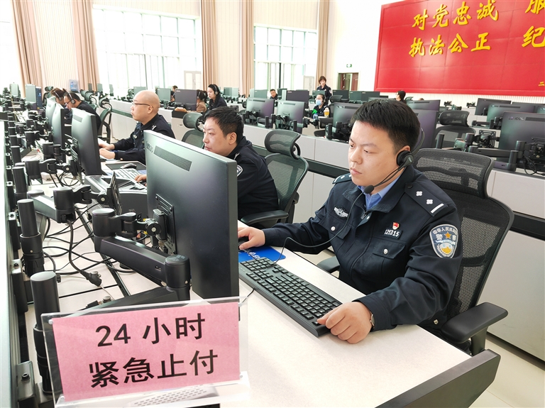 新乡市公安局刑侦支队民警王凯颜开展接警止付工作。马旭阳 摄