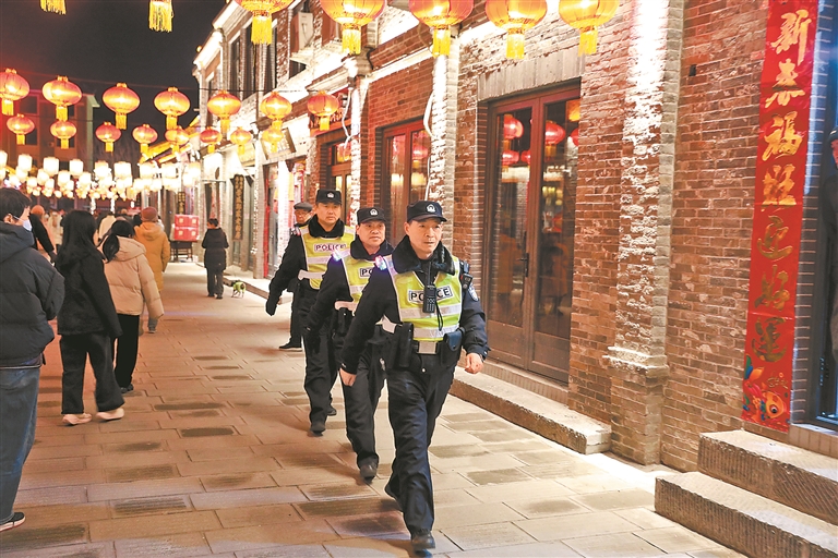 安阳市公安局文峰分局北大街派出所民辅警开展夜间巡逻。冯永华 摄