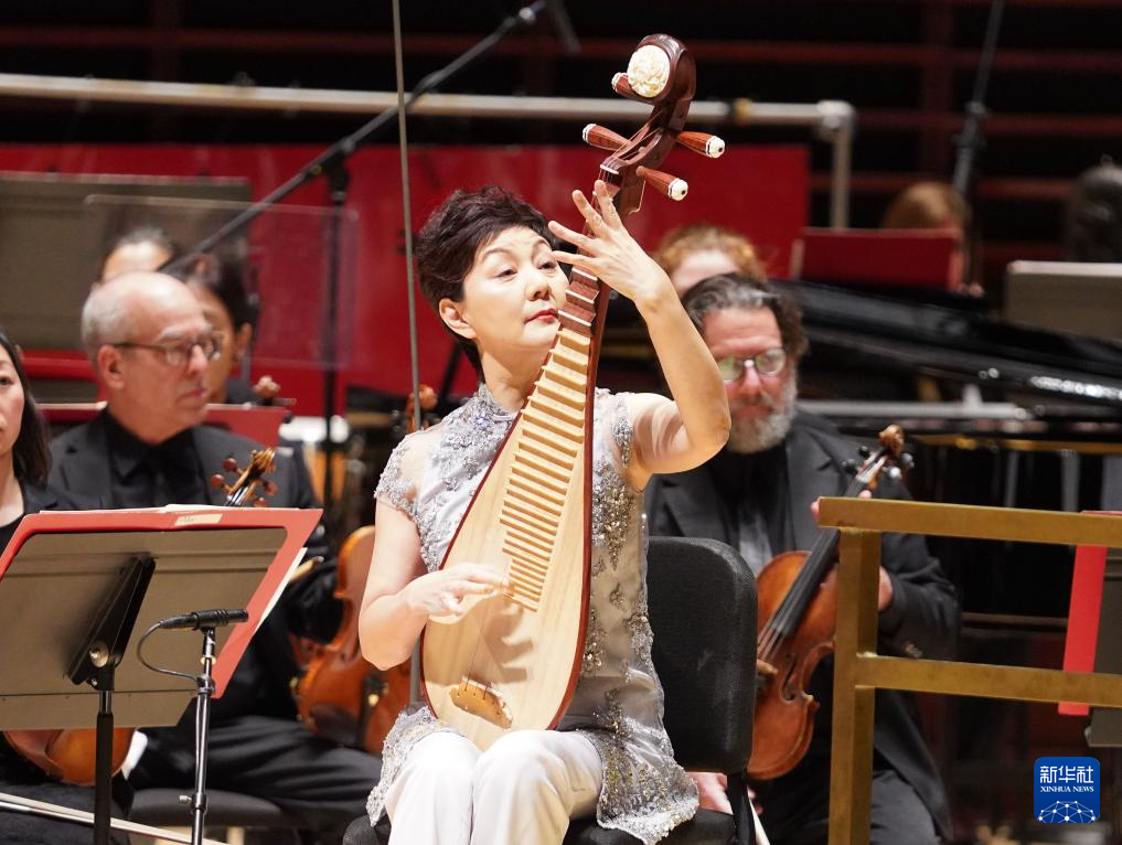 1月28日,在美国费城,中国民乐演奏家章红艳在2026“欢乐春节”音乐会上演出。