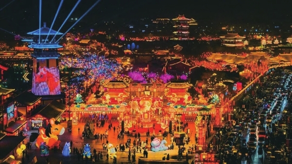 开封清明上河园上元灯会璀璨惊艳,百万花灯如点点繁星。