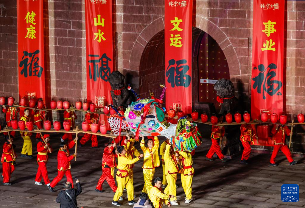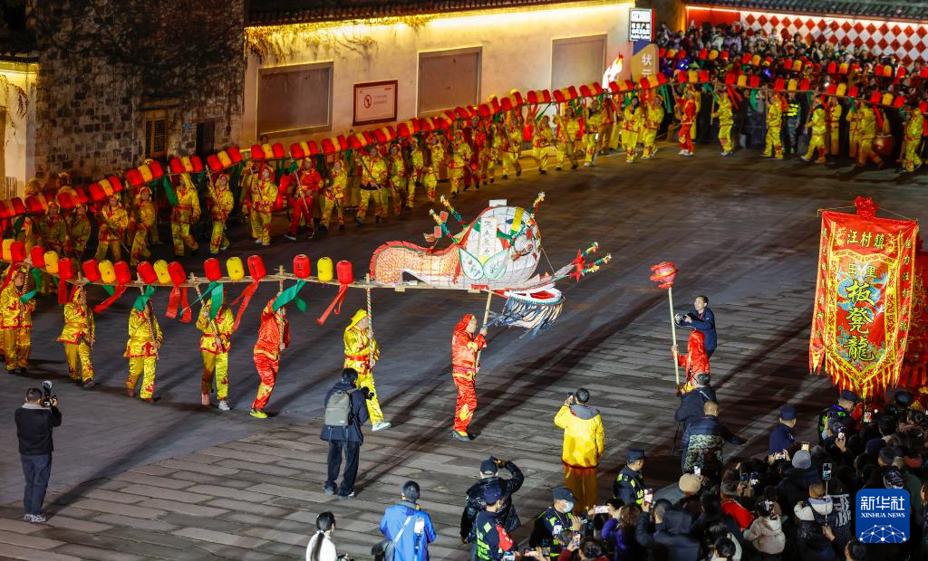 【网络中国节·元宵】板凳龙舞靓古城 流光溢彩迎元宵