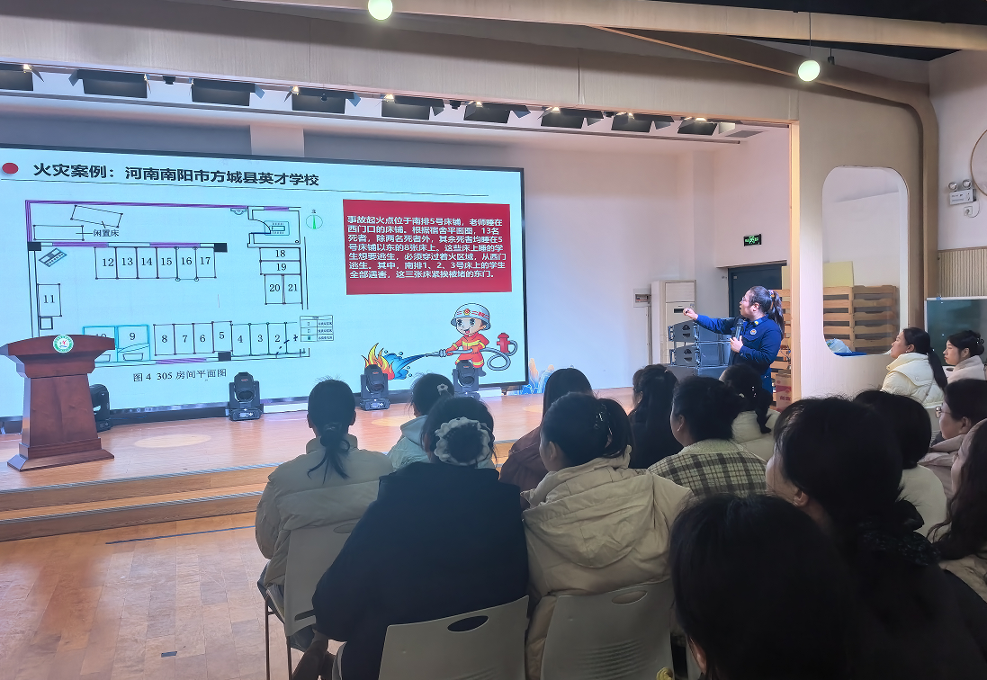 3月2日,为提升全体教职工消防安全素养与应急能力,愚公路幼儿园特邀济水消防大队专家开展消防安全专题培训。专家结合幼儿园实际,讲解火灾预防、器材使用、疏散逃生等知识,并以中四班模拟火情为场景组织应急逃生演练,让教职工在实操实训中熟练掌握技能,提升快速响应与协同处置能力。