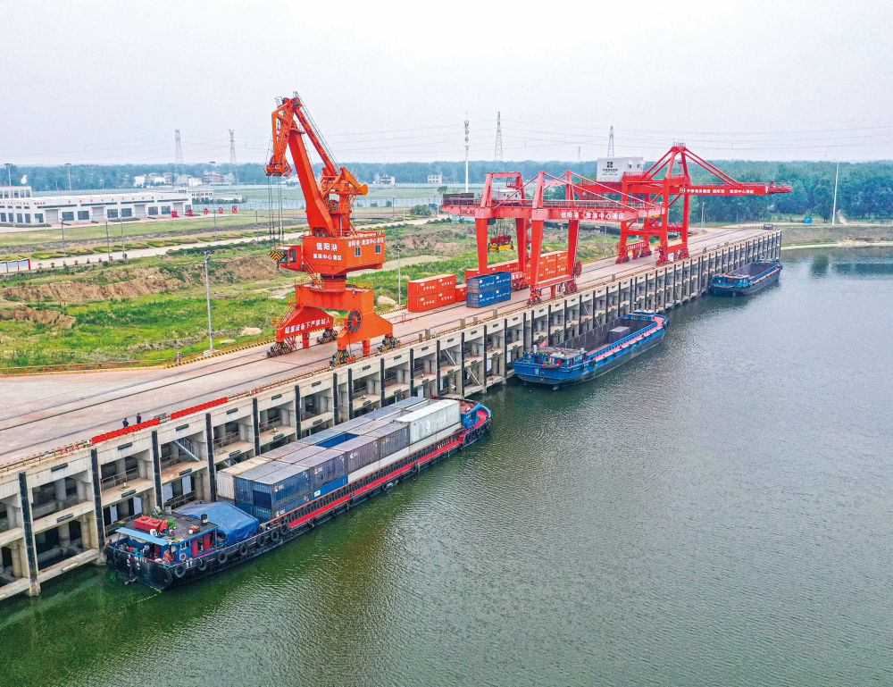 信阳市委书记张宏伟介绍,信阳市正抢抓内河航运高质量发展机遇,积极推动拓宽“中原出海通道”,发挥淮滨中心港大河大港优势,聚力发展枢纽偏好型临港经济,推动“港航城产运贸”协同发展,变“经济通道”为“通道经济”。