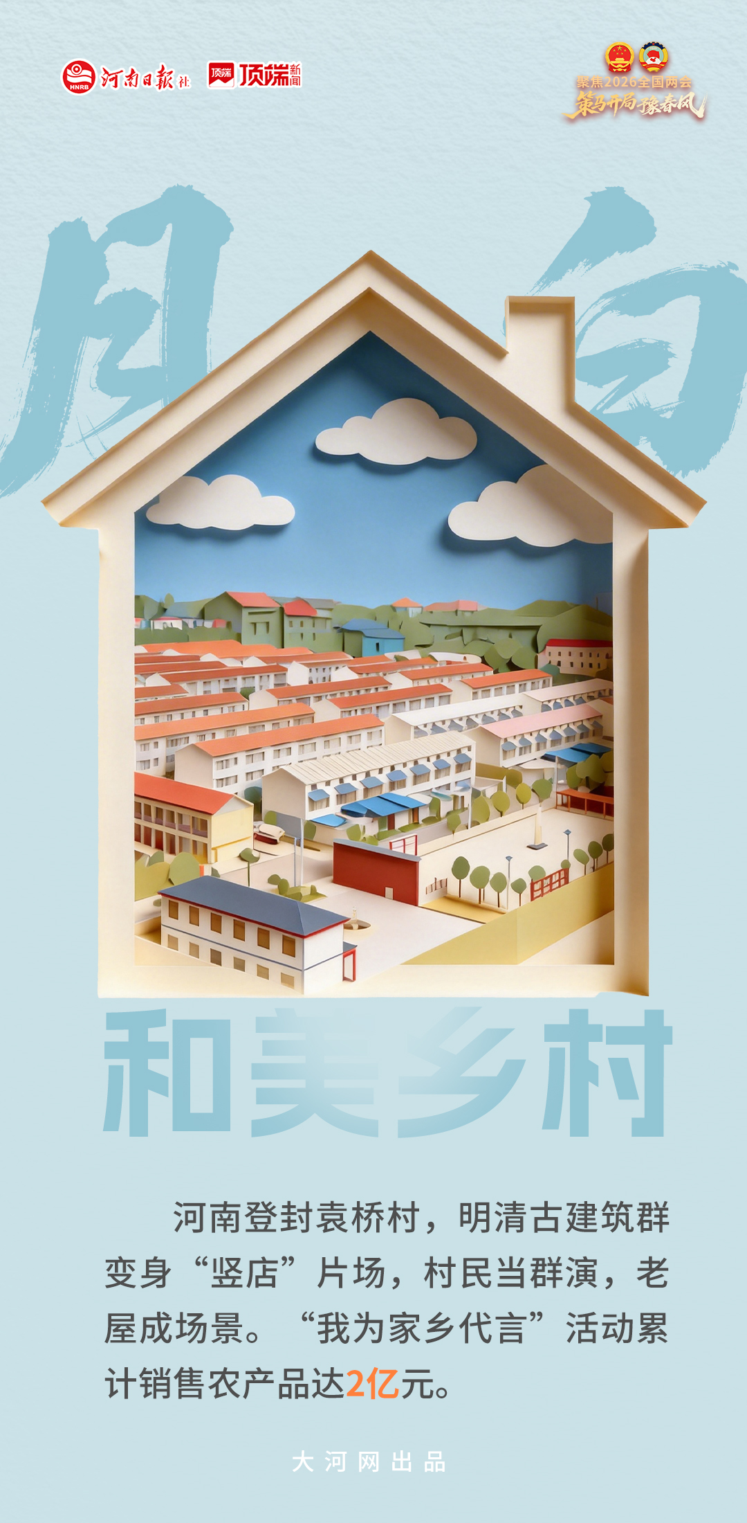 “治理六乱、开展六清”,人居环境整治让村庄焕然一新。正如政府工作报告要求的,“持续整治提升农村人居环境,以钉钉子精神解决好农村改厕、垃圾围村等问题”。登封袁桥村,600年明清古建筑群变身“竖店”片场,2025年营收近400万元,微短剧收入占比近20%——老屋新生,生的不只是建筑,更是乡村的希望。河南“我为家乡代言”活动自2023年启动以来,已连续举办三届,累计销售农产品达2亿元。越来越多年轻人回到家乡,手机成了新农具,直播成了新农活。这正是“十五五”规划草案中“发展壮大乡村人才队伍”的生动写照。