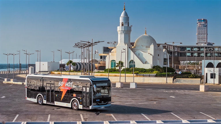 宇通客车在沙特吉达开启极热挑战,在地表64.3摄氏度的城市进行百公里能耗测试。本报资料图片