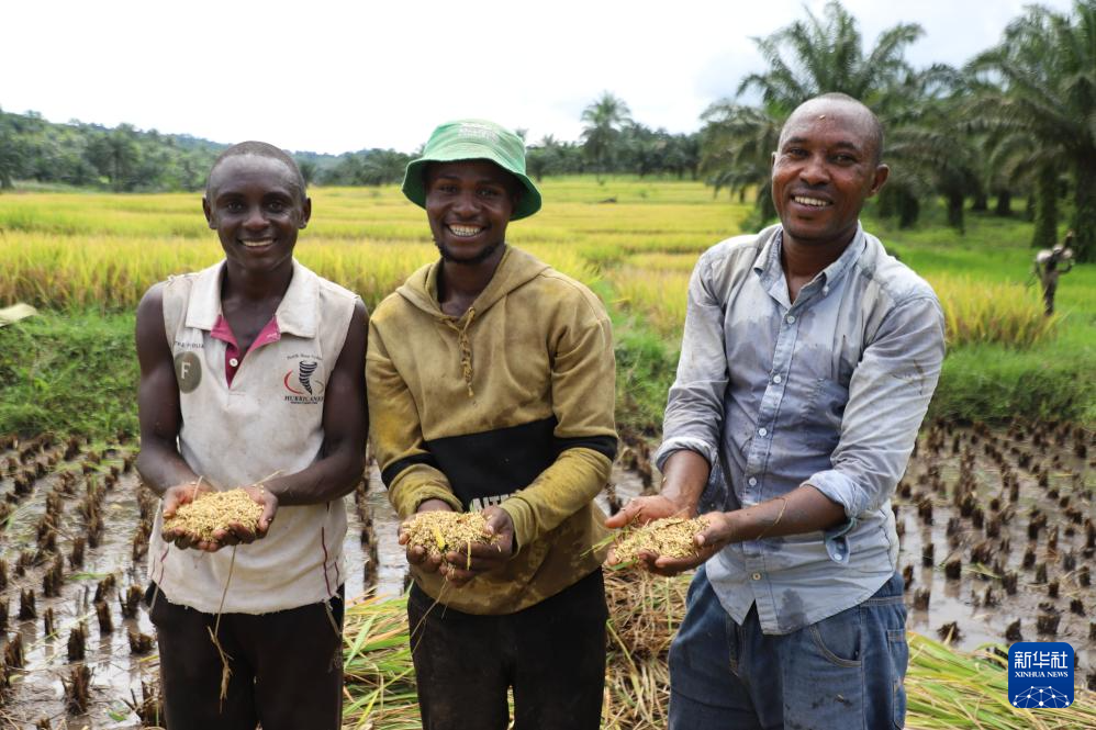 近日,姆潘达县的丘陵坡地杂交水稻示范区迎来丰收,亩产达746公斤,而在中国专家到来前,当地亩产长期不足200公斤。中国援布农业专家组从2015年开始在布隆迪进行杂交水稻试验研究。经过十年的发展,目前布全国杂交水稻单季面积约75000亩左右,平均亩产600公斤。新华社记者 鞠银河 摄