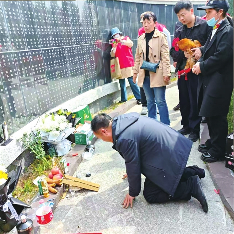 他们按照老家习俗,从家里带了一只活鸡,在烈士墓前,让鸡鸣声引路,引领英魂归乡。祭拜结束后,他们将鸡带回老家,在奶奶和那块砖头合葬的墓前放生。