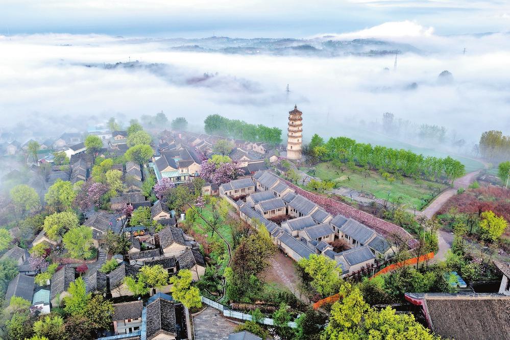 4月9日,云雾中的王屋镇愚公村。