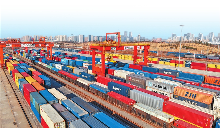 繁忙的中铁联集郑州中心站。 本报全媒体记者 聂冬晗 摄