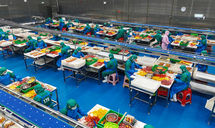 总部位于郑州的食材供应链企业锅圈食汇,用一张“数字菜单”链接起全国上万家门店和数百家上游工厂。原本只是贸易商的鹿邑县茂源肉业,进入锅圈食汇的供应体系后,产品矩阵迅速扩展,成为中部规模最大的羊肉深加工清真源头工厂——“大象起舞,群雁齐飞”正是河南农业转型的缩影。