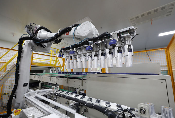这是河南焦作的多氟多新材料股份有限公司氟芯大圆柱电池生产线(资料照片)。新华社发