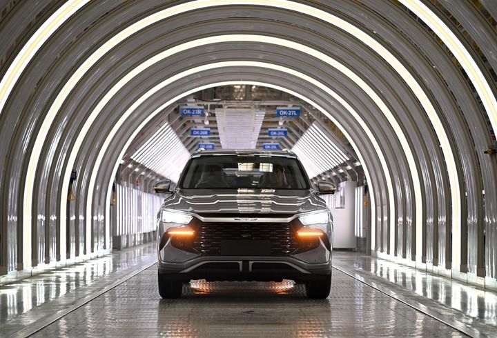 这是2025年11月3日在郑州航空港区比亚迪总装工厂拍摄的新能源汽车“宋Pro”生产线。新华社记者 李嘉南 摄