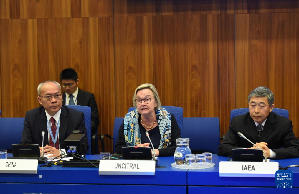 4月28日,在奥地利维也纳,联合国国际贸易法委员会秘书长乔宾-布莱特(中)在全球治理倡议主题活动暨维也纳“全球治理之友小组”启动仪式上致辞。新华社记者贺灿铃摄